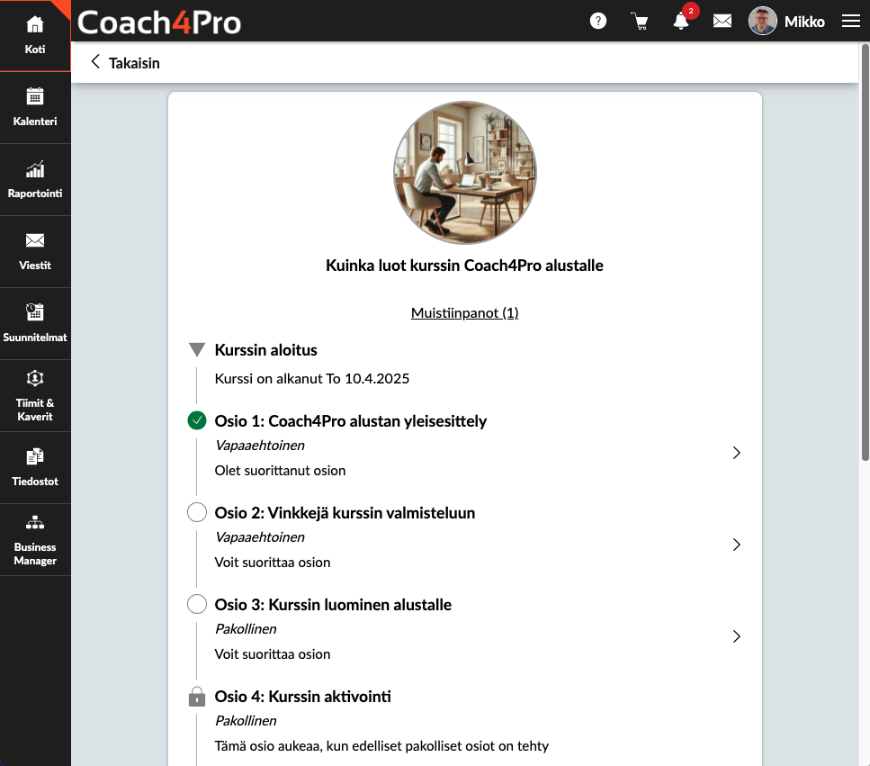 Coach4Pro sisältää selkeän ja yksinkertaisen käyttöönottoprosessin. Tarjoamme oppaat ja tukea sekä sinulle että asiakkaillesi, jotta käyttöönotto onnistuu helposti ja nopeasti.